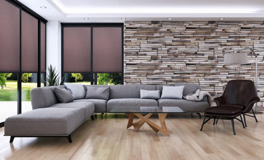 Der Stoff ist von der Außenseite mit einer Gummischicht bedeckt, so dass er kein Sonnenlicht durchlässt. Deshalb ist dieser Stoff zu 100 % verdunkelnd. Die Kollektion umfasst einfarbige Stoffe in modernen Grau-, Braun- und Beigetönen. Die Lichtdurchlässigkeit beträgt 0%. Diese Stoffe eignen sich perfekt für Räume mit Fenstern ohne Außenrolladen.
